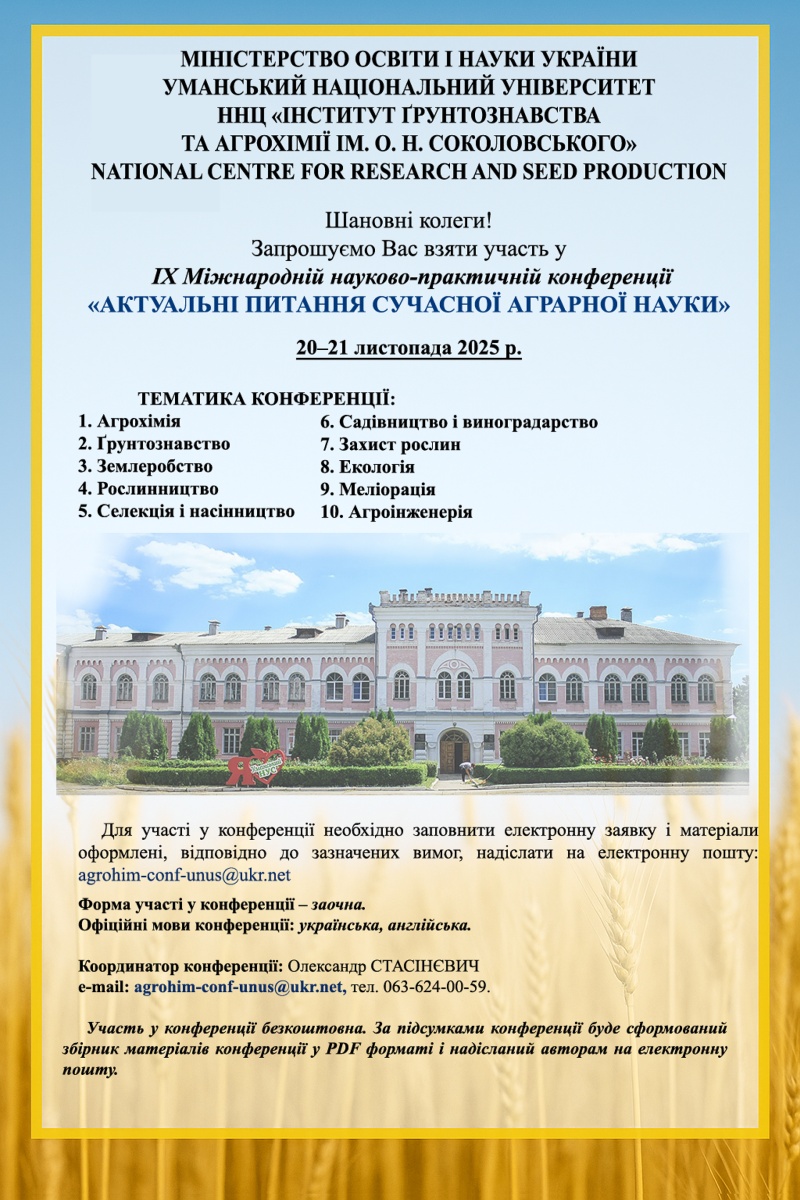 IX Міжнародна науково-практична конференція "Актуальні питання сучасної аграрної науки" Матеріали ЗапрошенняInvitation Фотогалерея