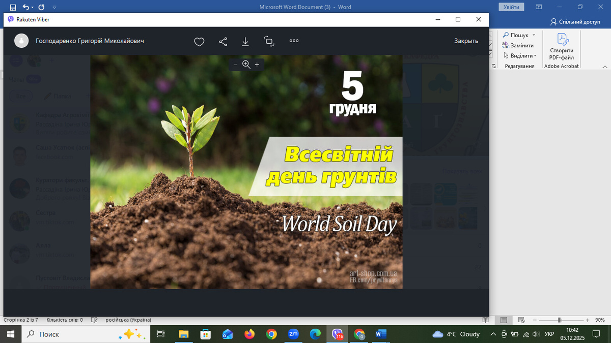 На кафедрі агрохімії і ґрунтознавства Уманського національного університету 5 грудня 2025 року відбувся науковий семінар «Збалансоване використання та відтворення родючості ґрунтів», приурочений Всесвітньому дню ґрунтів.