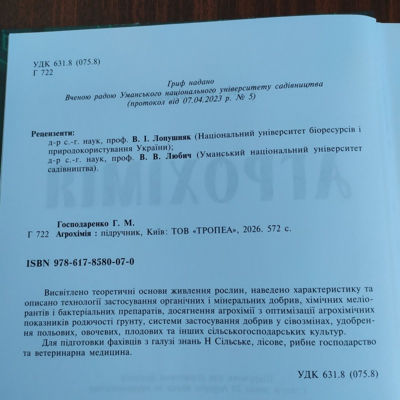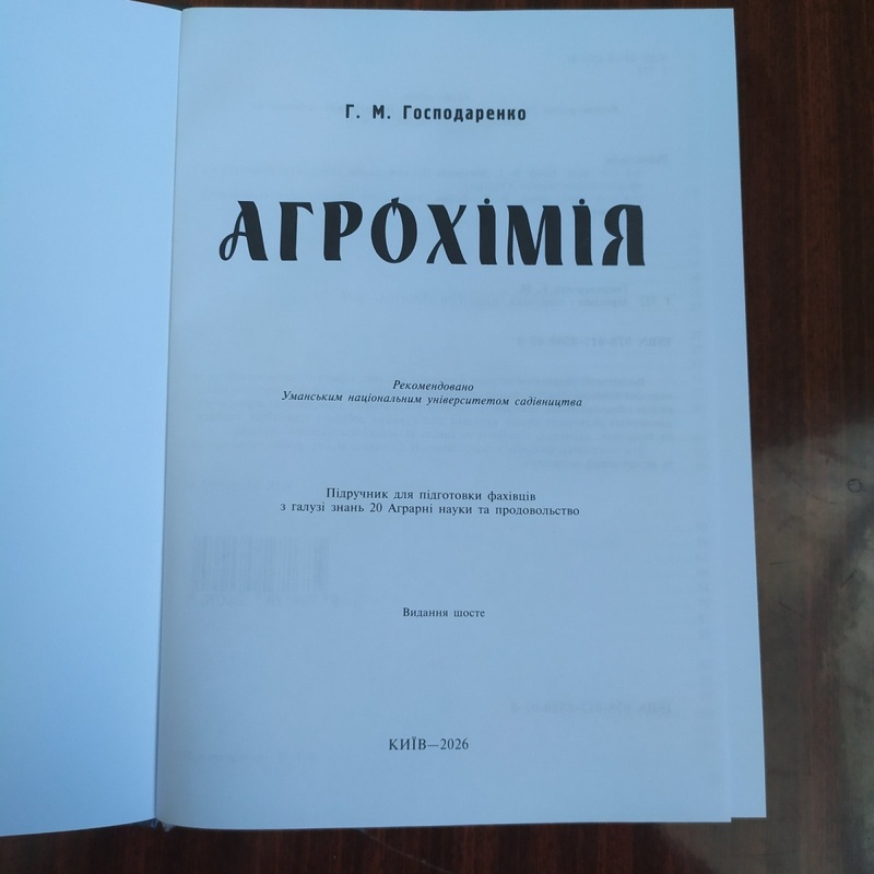 Нещодавно вийшло з друку шосте, доповнене й перероблене видання підручника «Агрохімія», призначеного для підготовки здобувачів вищої освіти за галуззю знань 20 «Аграрні науки та продовольство».